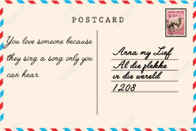Klik op 'n poskaart om te flip