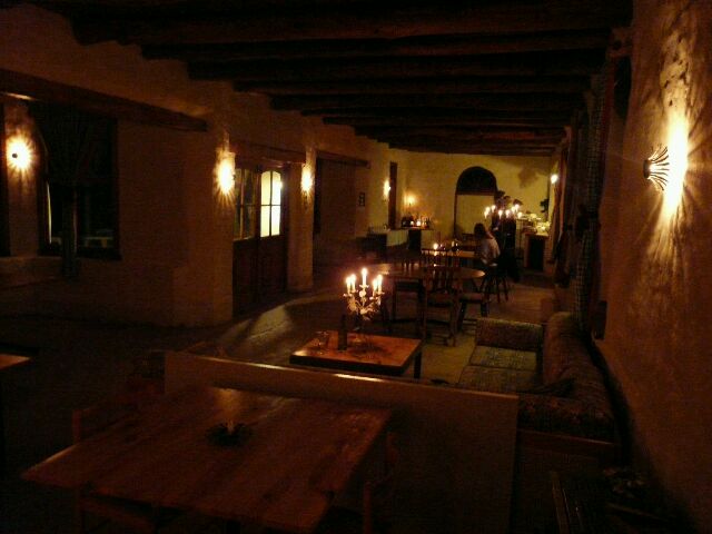 When we booked in, we requested a reservation for the restaurant which, so we were told, had a reputation for good food. We went a few minutes early to enjoy an aperitif at the bar. We discovered that we had no reservation and that the restaurant was fully booked. The Innkeeper was a mite upset at this news and spoke to the maitre d' as a father does to a son. When it became apparent that we are likely to be left dinnerless in Graaff-Reinet, we decided to squat. We appropriated the first table for two we could find, ordered wine and sat back. Thereby rendering someone else dinnerless. Hah! Dinner was mediocre. Anna had a sad sole and I had to deal with lamb parts masquerading as loin chops. And not doing a good job of it.