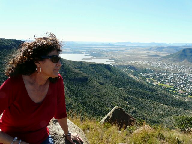Off to Graaf-Reinet, where we intended staying one night. Sufficient time to see whatever GR, as we old hands call it. has to offer. Graaff-Reinet was founded in 1786 by Governor van de Graeff. He either really loved his wife, Reynet, or added her name to the town to get out of a tough spot. In any event, this makes the place really, really old in South African terms. We generally regard anything that existed before tv as ancient. On that scale Graaff-Reinet is practically prehistoric. The town lies in the middle of the Camdeboo National Park. We noted when passing through on the way to NB, that it is also home to the Valley of Desolation. So, off to the Camdeboo Park we went. And to the Valley of Desolation. Sounds sort of hellish, doesn't it? "Sally, if you do not eat your pumpkin, I will send you to the Valley of Desolation." Just before the actual Valley- at its portals, one may say, is a lookout point. Where one can look out.