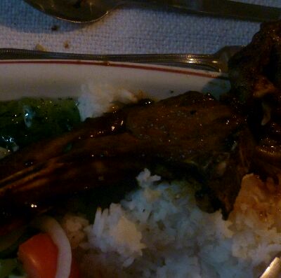 Dinner was a buffet, but a good one. Simply prepared leg of lsmb, braised lamb ribs, honey and herb roast chicken, lamb stew and great veggies. Started off by a thick bean soup. I love food that is prepared with love. This clearly was.