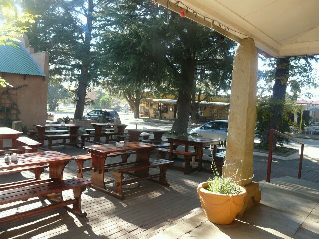 Anna bought the odd small thingy. Mostly for the grandchildren. We peered at fine art, trying to look knowledgeable. We looked at oodles of overpriced decorative art. And nary a twitch revealed her purpose, nor a glance her dastardly plan. Damn! Tee-hee We must have done something wrong. To be punished like this with bad food. It is not as if we are picky foodies. We appreciate all food that is prepared without pretense and with love. Despite this we seem to bring out the worst in the eateries we encounter. Lunch on our second day in Clarens was a case in point. (I'll skip breakfast. It was the same old same old. Floppy bacon only suited for swatting flies, dry yellow stuff masquerading as eggs.) We wanted something small and thought Vito's, an Italian place below our guest house might be just the thing. Hah! A garlic focaccia and two portions of snails, accompanied by a modest merlot was ordered. The merlot was quaffable, the focaccia was fine and the snails were vrot. As in off. As in stinky off. We are doomed. Doomed I tell you. Anna thinks it is all due to stuff left over from the long weekend. So maybe the lesson is not to visit isolated villages just after a long weekend..... We spent the afternoon snuffling around the shops and coffee places. Most pleasant. The evening's dinner was due at The Highlander. Anna had a chicken pot pie that was pronounced very good. I tried rump steak. It was not bad. Not great, but not bad. Maybe we are breaking our streak.