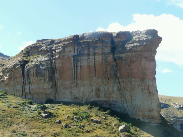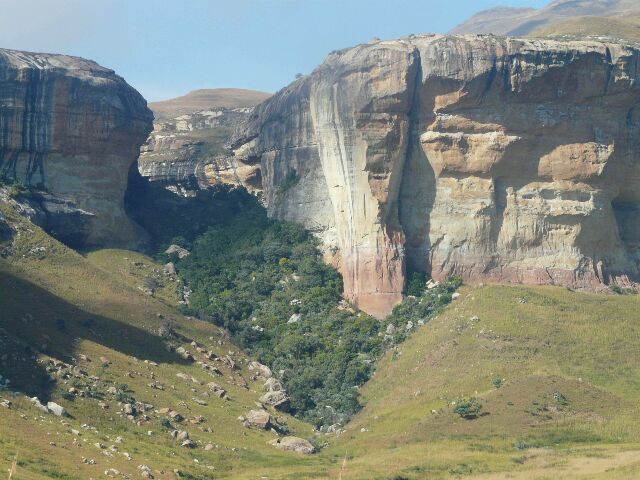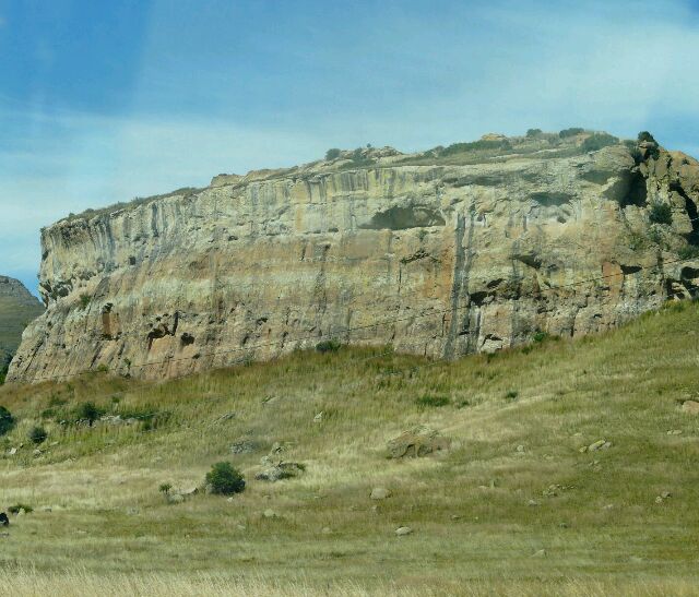 Approaching Clarens the landscape is defined by huge buttresses of weathered sandstone.