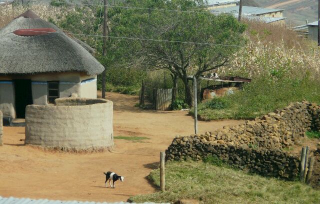 We left the Midlands and trundled through PM (That is Pietermaritsburg to the new hands), and found ourselves eating calamari heads on the Esplanade in Durban, where the city fathers have apparently not heard that it is winter. They somehow manage to keep the entire city at a balmy 31C. Down the coast to Mtentweni we went to visit Thys and Noreen. Great hosts, good friends, splendid visit. We made an early start on Sunday morning - about 650km to get to Hogsback. This is driving I hate passionately. Starting at A with the sole purpose of getting to B. Especially when you know the the road is going to be exquisitely boring. As it was. Through rural Eastern Cape. Hills dotted with huts and houses.