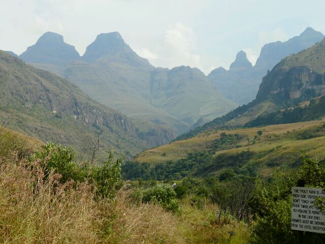 We were forcibly struck by the thought that the kids we saw running around the school grounds would have had no high aspirations only a few years ago. A bleak future. A hardscrabble existence in the countryside where apartheid neatly segregated them. Not that it is easy today. Unemployment is high and opportunities are limited, but at least there are no institutional barriers to getting somewhere. We managed to negotiate a 30% discount at the Cathedral Peak Hotel and booked the honeymoon suite for two days. Stunning room with stunning views.