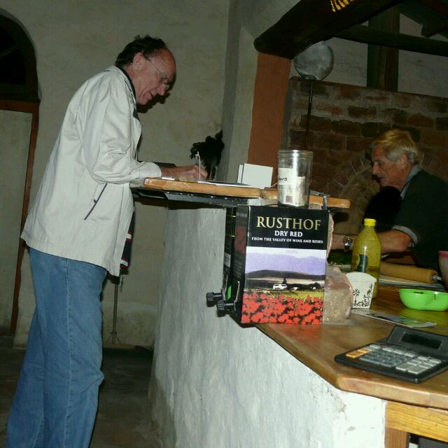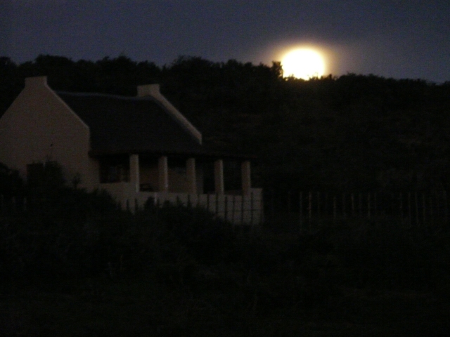 When we booked in, we requested a reservation for the restaurant which, so we were told, had a reputation for good food. We went a few minutes early to enjoy an aperitif at the bar. We discovered that we had no reservation and that the restaurant was fully booked. The Innkeeper was a mite upset at this news and spoke to the maitre d' as a father does to a son. When it became apparent that we are likely to be left dinnerless in Graaff-Reinet, we decided to squat. We appropriated the first table for two we could find, ordered wine and sat back. Thereby rendering someone else dinnerless. Hah! Dinner was mediocre. Anna had a sad sole and I had to deal with lamb parts masquerading as loin chops. And not doing a good job of it.