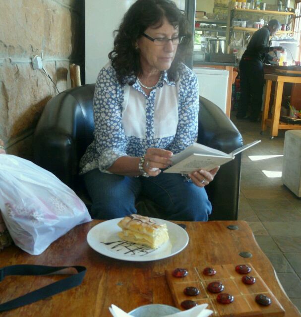Anna bought the odd small thingy. Mostly for the grandchildren. We peered at fine art, trying to look knowledgeable. We looked at oodles of overpriced decorative art. And nary a twitch revealed her purpose, nor a glance her dastardly plan. Damn! Tee-hee We must have done something wrong. To be punished like this with bad food. It is not as if we are picky foodies. We appreciate all food that is prepared without pretense and with love. Despite this we seem to bring out the worst in the eateries we encounter. Lunch on our second day in Clarens was a case in point. (I'll skip breakfast. It was the same old same old. Floppy bacon only suited for swatting flies, dry yellow stuff masquerading as eggs.) We wanted something small and thought Vito's, an Italian place below our guest house might be just the thing. Hah! A garlic focaccia and two portions of snails, accompanied by a modest merlot was ordered. The merlot was quaffable, the focaccia was fine and the snails were vrot. As in off. As in stinky off. We are doomed. Doomed I tell you. Anna thinks it is all due to stuff left over from the long weekend. So maybe the lesson is not to visit isolated villages just after a long weekend..... We spent the afternoon snuffling around the shops and coffee places. Most pleasant. The evening's dinner was due at The Highlander. Anna had a chicken pot pie that was pronounced very good. I tried rump steak. It was not bad. Not great, but not bad. Maybe we are breaking our streak.