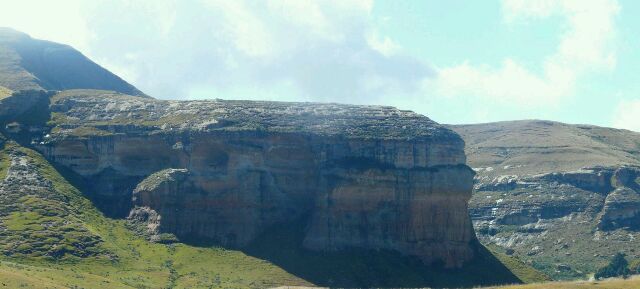 Approaching Clarens the landscape is defined by huge buttresses of weathered sandstone.